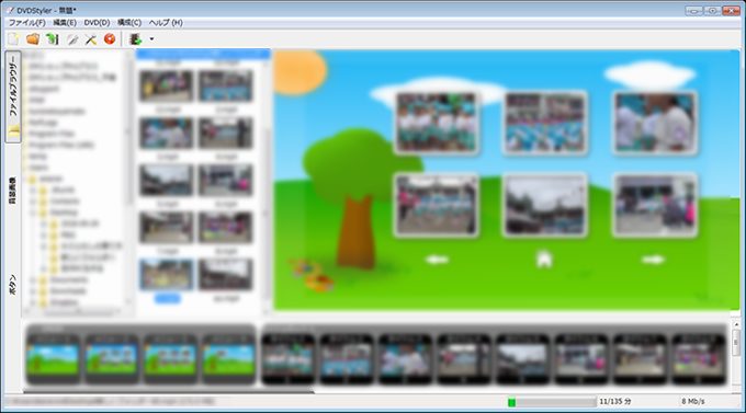 解説サイトがたくさんあるので、必要なとこだけ簡単に。手順としては、いきなりDVDに焼かずにisoを作ってVLC media playerで再生させてみる。問題がなければ書き込む。映像形式はNTSC 720×480、横縦比は16:9、音声形式はAC3 48 kHzに設定する。ディスクラベルは文字は必ず半角英数で入力する。理由は全角文字を使うとディスク名が文字化けする(ディスクマウント時)。あと、「XXXX年XX月 ○○幼稚園運動会」とか半角スペースを入れると書き込みに失敗するので注意。