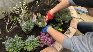 前回の続き。ママさんチョイスで花を選び、完成した花壇に草花を植えました。気分は用務員さんです。アナベルも移動。すっきりポールの足元もレンガで綺麗にしました。土は培養土をドサドサ入れました。みんな元気に育ってくれたら嬉しいなー。というわけで、...