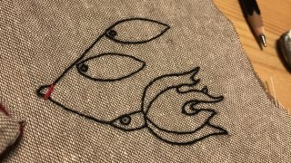 刺繍にプチハマりしているアネロンです。基本の縫い方をマスターしたところで、いよいよ本命のブラックバスを刺繍。手描きしたイラストを元にひたすら縫っていきます。一通り縫い終わりました。なんだか迫力がありませんね・・・。元のイラストがショボイのは...