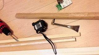 前回の続き。上部の隙間の隠し方です。▼奥行きを測って木枠を組みます。見えなくなるので、材料は本当に何でもいいです。▼作った木枠に廻り縁を貼り付けます。▼スーッと奥まで押し込んだら完成です。固定はしません。たぶん意味が無いのでw▼できた。▼横...