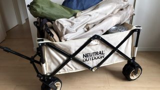 ニュートラルアウトドアのキャリアワゴンIIを購入。カラバリ豊富なDODとで迷ったけど、やっぱワイルドタイヤが良いな~って事でこっちにしました。おしゃれ色が強かった初代ワゴンに対し、IIはコンパクトにたためる&今までよりたくさん入るという改良...