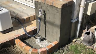 DIY 立水栓作りに挑戦(17) 前回の続き。積んだブロックの上に装飾用のレンガを並べました。レンガとブロックの奥行が合わないので、レンガを手前に置きつつ、奥を斜めに削ります。この辺はもう臨機応変に。ジョリパット仕上げの下地作りでは、普通のモルタルにハイフレックスを混ぜたも... 2021.10.12 DIY立水栓を作る