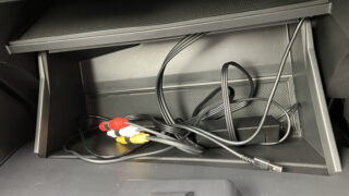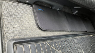 2列目の床に傘の置き場所を作った。雨の日の濡れた傘もここに突っ込む。出し入れを楽にしたいのでファスナーは全開だ。傘やサンシェード、スノーブラシや杖といった車内で置き場に困る長物の収納に使うのが本来の形らしく、濡れた物を入れる場合は乾かしてか...