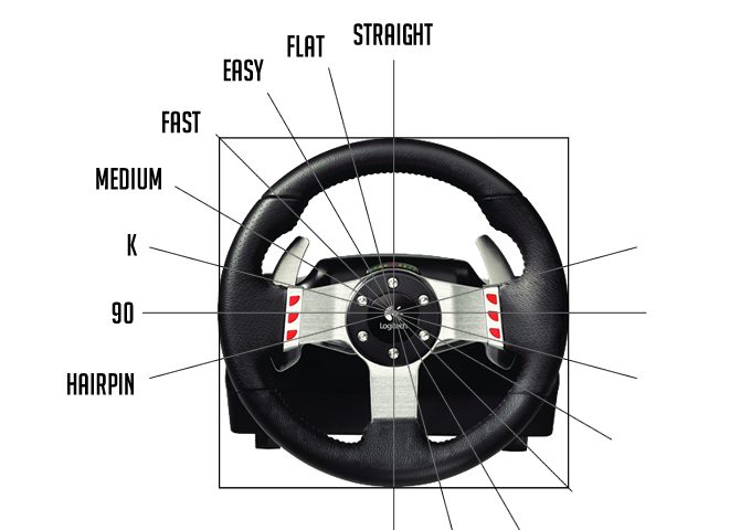 オンライントーナメントはLIVE感が増すので完走するだけでも楽しいですが、いままで適当に聞き流していたペースノートの読み上げを聞き取りながら走ると、より走りやすくなりました。というわけで、ステアリングの切れ角がちょっと曖昧だったので図に起こしました。