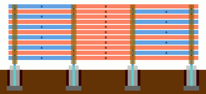 ・幕板の連結は3、1にして交互に貼る(今回、支柱が4本なので)。