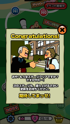 【ステージ145】ゴールデンエッグス パズル系 ~ならべて消してシュガーシュガー~ ゴールデンエッグス パズル系 X Facebook はてブ LINE コピー 2014.10.112014.10.25 離れ小島にいるノーマンは敢えて狙わずに、ひたすらブロックを4つ繋げることだけに集中すればアッサリクリアできると思います。 クリア最短手数は3でした。 ▼ステージ145 ▼Congratulations!
