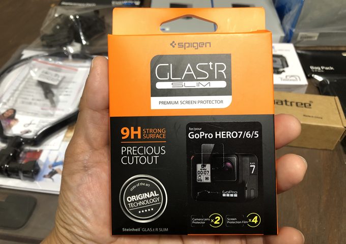 GoProの保護フィルムは、馴染みのあるSpigenにしました。これも各社で種類がたくさんあって悩まされますね。どれを選んでも然程違いは無いんでしょうけど(^^;。