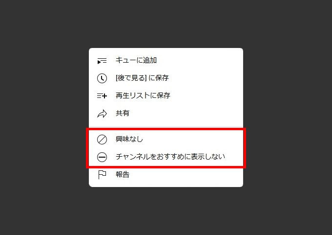 「興味なし」と「チャンネルをおすすめに表示しない」をリセットする方法