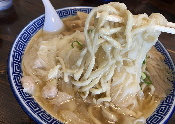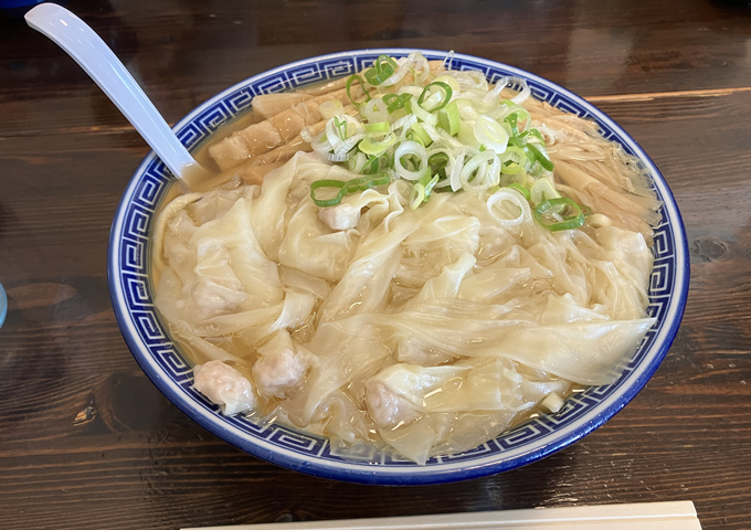 定番の中華そばをスルーしてワンタン麺をチョイス。欲張って「大」にした。麺は極太のちぢれ麺。強い噛みごたえがあるワシワシ麺なので細麺派は大変かもしれん。ワンタンの食感がとろとろで美味かった。透き通ったスープはあっさり系で塩味はおとなしめ。上品なワンタン麺だなーって感じ(わかるかw)。次は中華そばにしたい。