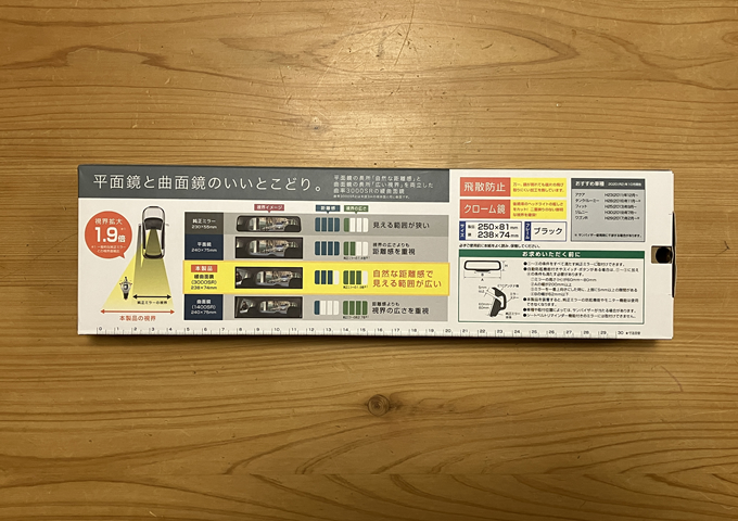概ね夜間にはハイビームで煽られるでしょうから、眩しさを軽減するクローム鏡にしました。