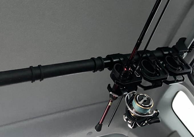 ムーヴカスタム LA100Sセレナに付けてるインテリアバーをムーヴに仮設置してみたところ、こりゃ釣りに行く日以外は使えないぞ、という感じがした。というのも頭とバーの距離が思ったより近くて結構邪魔というか、まあ、自分しか乗らないなら我慢できるけど、助手席や後部座席に乗ってる人からするとクソ迷惑だなと思った。というわけで、普段使いとしてインテリアバーを常設しておくのは却下とし、代案としてルーフネットでも付けてみようかな?みたいな。あ、釣り車として使う時にはがっつり積むけどね!