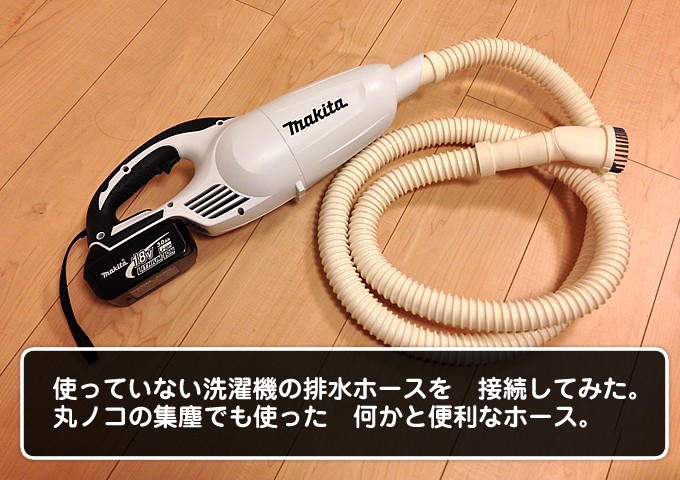 というわけで、右手にはノズル、左手に本体(トリガースイッチ)という体勢で車を掃除してみた。やはりマットの下のカーペット?に散らばっている細かいゴミは手強かった。丁寧にブラシで掻き出しながらやっと吸い取れる感じ。もう少しパワーが欲しかったけど、吸いきれないゴミはとりあえず無かったし満足。手が疲れるというトリガー部分は軽い力で引けるからそれ程辛く無いかも。まあでも普通のスイッチの方が遥かにラクチンか(^^;。バッテリーはまだまだやれまっせ!という感じがする。
