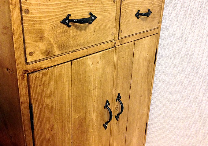 カップボードできた! DIY X Facebook はてブ LINE コピー 2015.04.212016.06.21 前回の続き。 頼んでいた取っ手の金具が届きました。 ▼少しだけ装飾が付いています。 ▼出来た~(^-^)。
