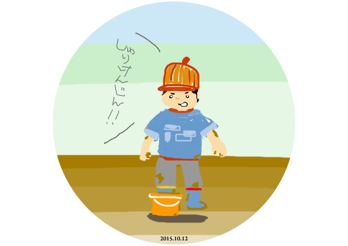 息子は泥遊びに夢中のようだ。