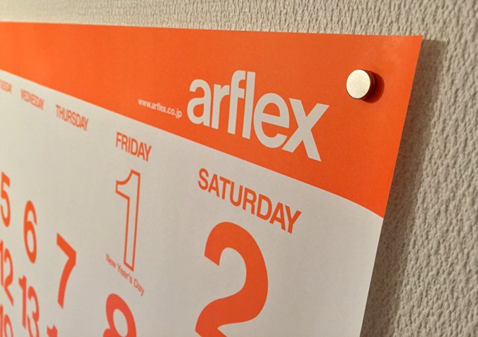 ▼画鋲とネオジム磁石でカレンダーに穴を開けずに壁に貼れます。