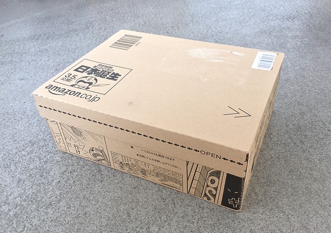 amazonのダンボールが最近随分凝っていて(妖怪ウォッチのスペシャルボックス、15周年記念ボックス(ボックスマンver、ポチver))、今度はドラえもんバージョンのが届いた。