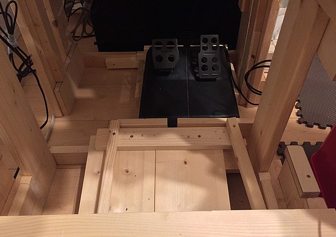RBR端材作ったコックピットは拡張を続け、息子でもペダルが踏める仕様になりました。が「ビューンして」と言われるので僕がアクセル&ブレーキを担当する機会が多いです。親子大会があったら、予選くらいは突破したいです(笑)。