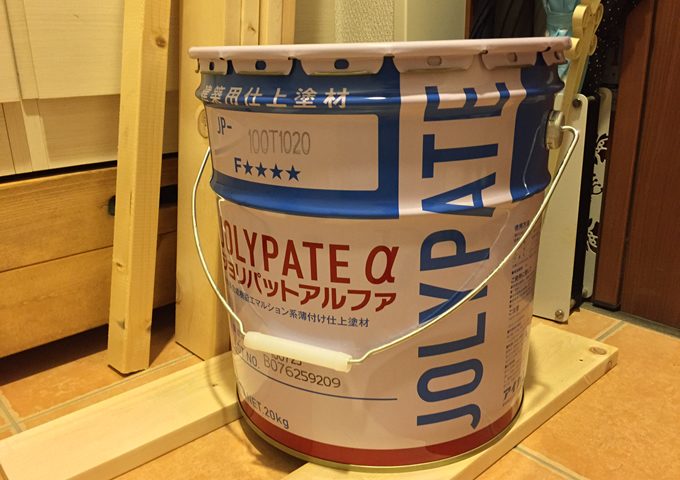 天気が悪くて何もできないので、次の作業で使う道具(ジョリパット(T1020)、シーラー、仕上げ用の鏝、マスカや養生テープなど)の準備です。余談ですが、270mmの鏝と240mmの鏝ってどっちを使うかでいつも迷います。270mmだと力が入れやすいのでしっかり抑えられる。でも細かい所や微妙な修正が苦手。240mmだと持ちやすくて作業しやすいけど、平滑に仕上げるのが何故かとても難しくなる。数センチの差なのにえらく違う(^^;。