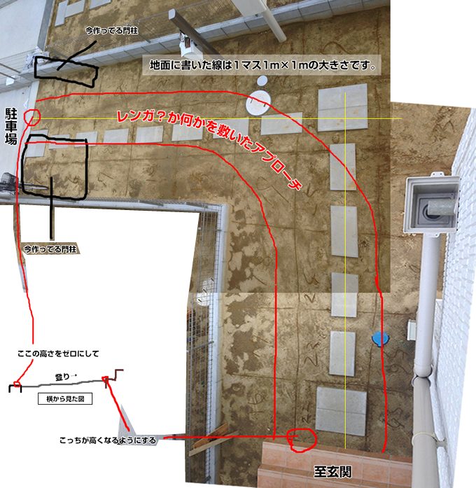 門柱作りも終盤!次はアプローチ作り!というわけで、少し構想を練ってみました。