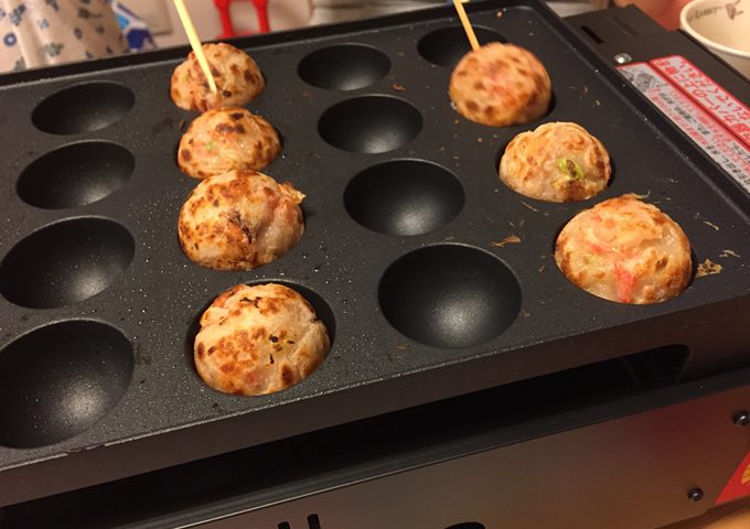 家で使ってるたこ焼きは「たこ焼き名人」という製品です。電気を使わないので、ガスボンベがあれば屋外で使えたりもします。鉄板が取り外せて、丸洗いできるヤツがいいかも。