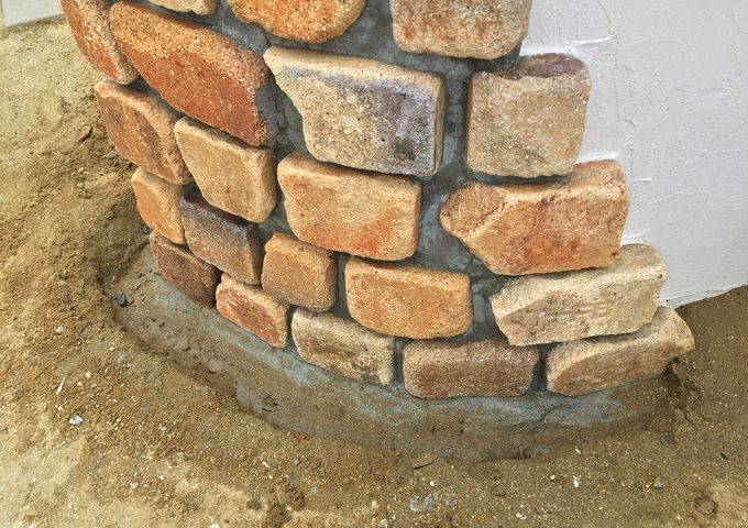 1段目のレンガの目地が露出するように掘り起こしておきました。