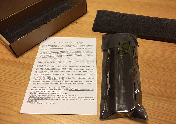 メーカーに純正バッテリーの見積り依頼を出したら高過ぎた(2万でお釣りがくる的な)ので、安価な互換バッテリーをチョイス。互換って大丈夫なん?と少々不安だったけど、とりあえずちゃんと使えたので報告。