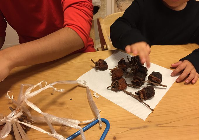 そろそろ?というわけで干し柿を収穫してみた。干してた期間は2週間半くらいだと思う。見た目がちょっとアレだけど、恐る恐る食べたらドライにした柿って感じ。そりゃそうか。遠いところに甘みがあってかなり薄味。美味い!って感じはないな。あと食感がとりあえず硬い。顎を鍛えるにはいいかも。干してる途中でモミモミした方が先に黒っぽくなって、何もしてない方はオレンジ色が最後まで残った。