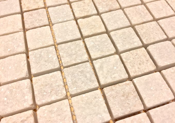 洗面所リフォーム!というわけで、注文していたタイルが届きました。接着剤や目地もまとめて揃ったので、次回あたりからいよいよタイル貼りに挑戦です。タイルはメッシュで繋がっていて、カッターやハサミで簡単に切れそう。サイズは298mm×298mmで、厚みは10mmであります。目地材は水で練る粉タイプでした。これは門柱の目地で使った西洋漆喰と同じ様な感じかな。タイルの表面がザラついているから一本目地詰めするのが良さそう。