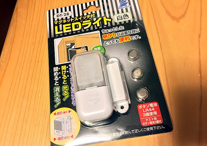 セリアにあった「マグネットスイッチ付きLEDライト」がポスト内ライトにいんじゃね?ってことで購入してきました。ちなみに純正のオプションライトは2~3,000円くらいなのでかなりお得。2個付けても200円ちょい!