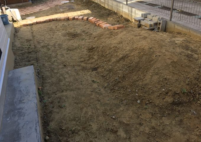 (2)内側部分に砕石などを敷き、しっかり転圧する。