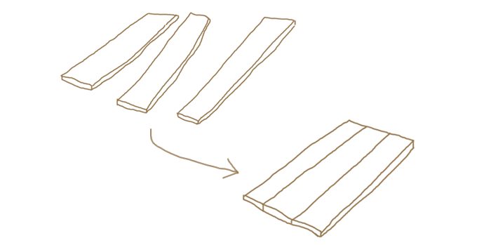 幅が狭い1×4材をどーにかこーにか幅が広い一枚の板にする方法を思いつくままに書きました。板の反りや強度などが要らないとき、とりあえず繋がってればいいって時なんかは(6)で済ますことがありますw