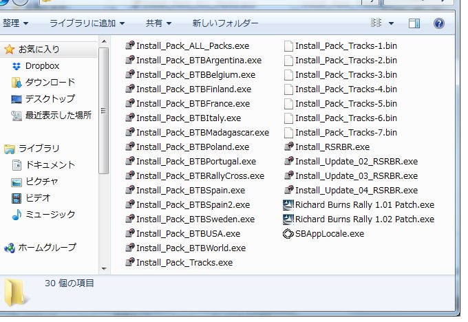 (5)SBAppLocale.exeと「(4)」で作ったRSRBR.batを「C:\RichardBurnsRally」にコピーします。